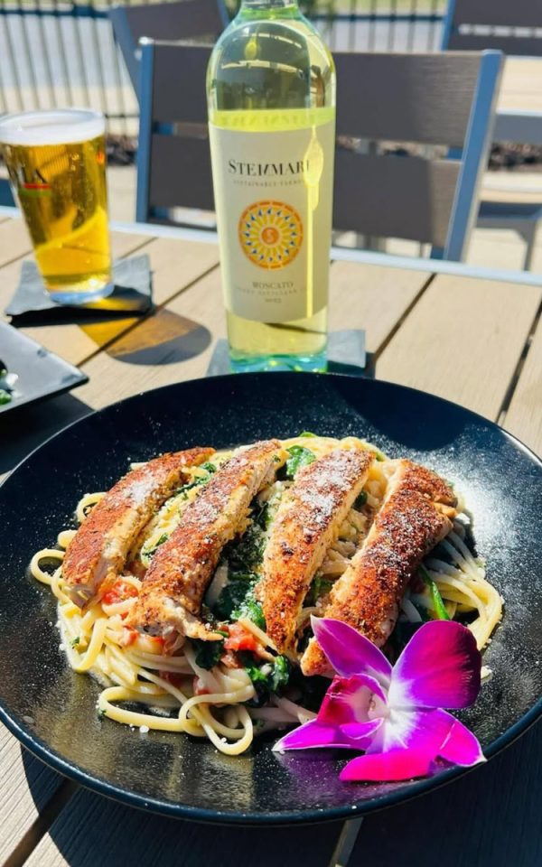 $20.5Chicken breast simmered in a white wine sauce with mushrooms, roasted red peppers and spinach topped with fresh melted mozzarella